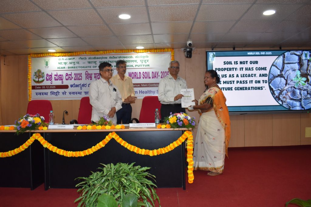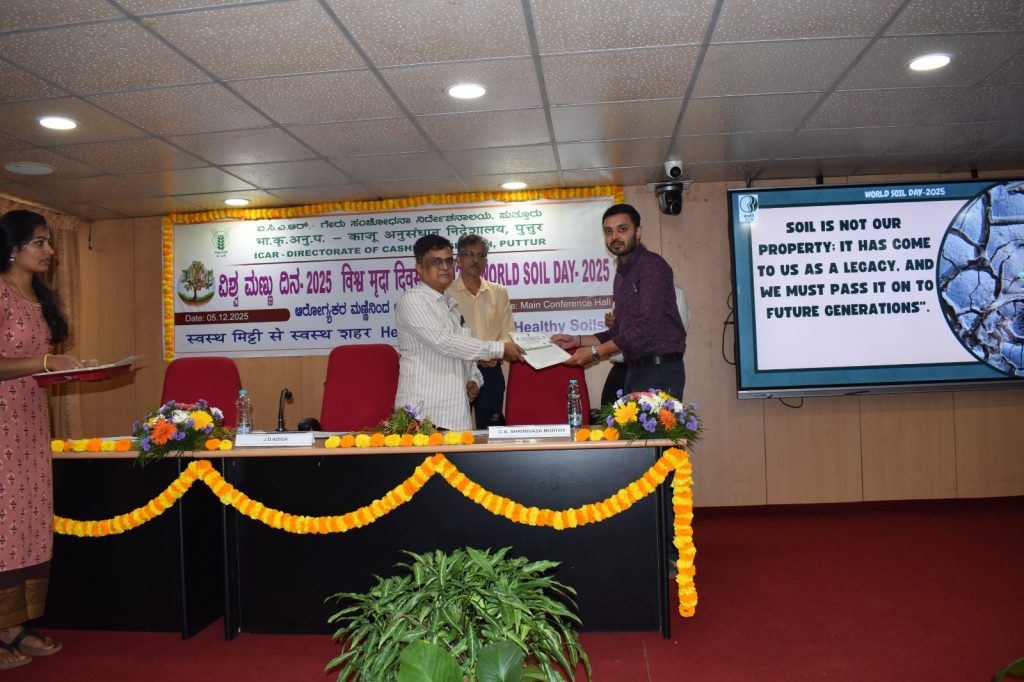The ICAR–Directorate of Cashew Research (ICAR–DCR), Puttur celebrated World Soil Day on 5th December 2025 with great enthusiasm and participation. This year’s global theme, “Healthy Soils for Healthy Cities,” emphasized the crucial role of soil in building sustainable, livable, and resilient urban environments. The event highlighted that the true strength of a city lies beneath the ground in its soils.