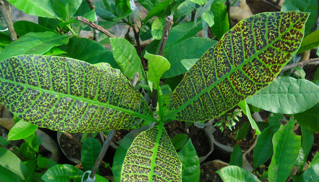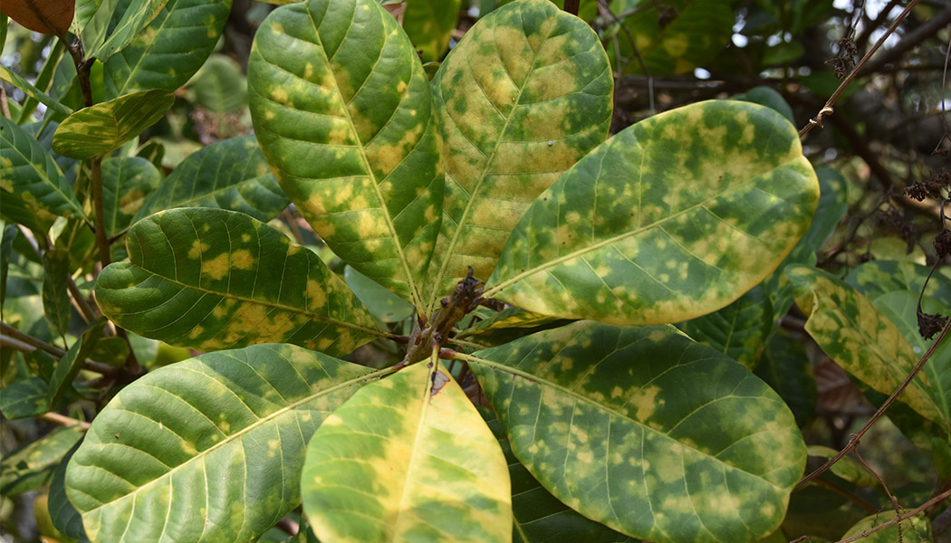 The deficiency of micronutrients can be known from the symptoms on cashew leaves and are ascertained by soil testing or leaf analysis. They can be corrected by either soil or foliar application. Excess application of nutrients especially the micronutrients leads to more damage than non-application, by inhibiting the availability of other nutrients. Foliar application of nutrients is the quickest way to correct major and minor nutrient deficiencies in cashew (For more info please visit Cashew Nutrient Manager https://cashew.icar.gov.in/soil/ )