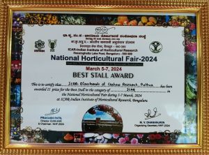 • Best stall Award, National Horticulture Fair-2024 organised at IIHR, Bangalore, 5-7 March 2024