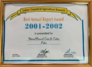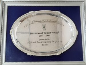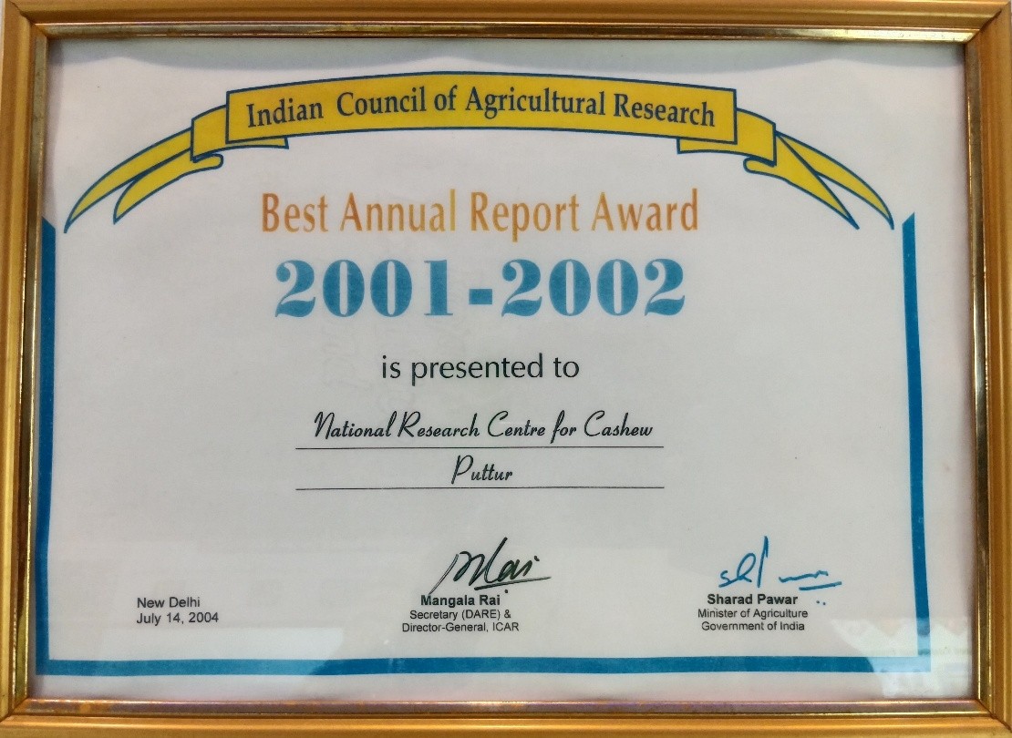 • Best Annual Report Award for the year 2001-2002 by the Indian Council of Agricultural Research, Pusa, New Delhi