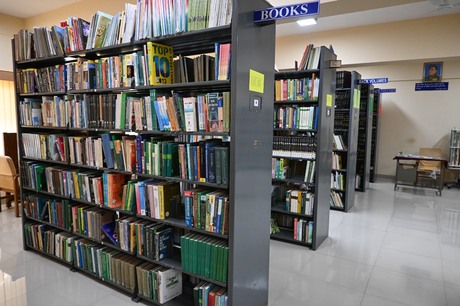 A total of 2255 bound volumes of scientific journals are arranged and maintained alphabetically in the library.