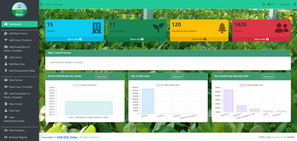 As part of its commitment to modernizing agricultural extension, the institute has developed three flagship digital tools—Cashew India app, Cashew Farmers Tracking System (CFTS), and Cashew Protect app for providing farmers with real-time advisories, field-level data tracking, pest and disease management support, and access to improved technologies. Their adoption has strengthened the institute’s outreach, improved decision-making at the farm level, and accelerated the transfer of scientific recommendations to cashew growers across diverse regions.