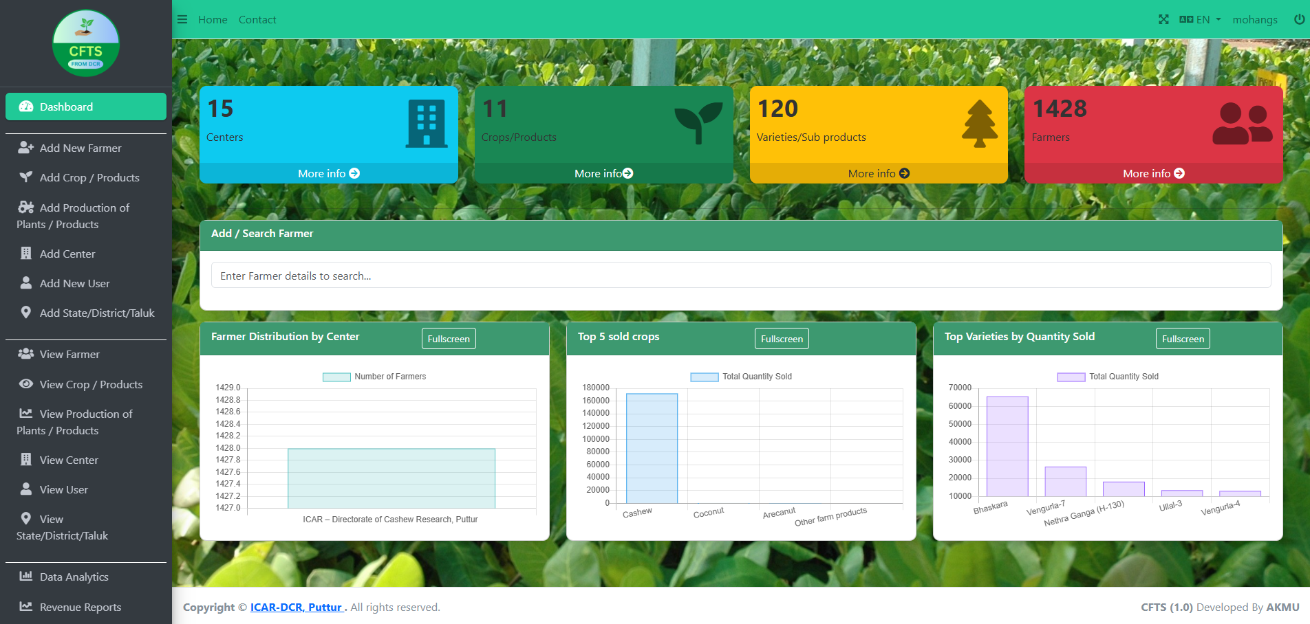 Dr. Aswathy Chandrakuma, Dr. Siddana Savadi, Dr. Bhagya H P, Dr. Thondaiman V & Dr. Manjunatha K - Cashew Farmer’s Tracking System (04/2024- 08/2027)